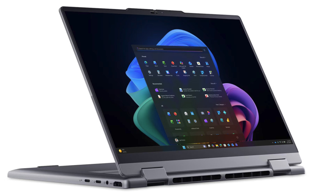 Als Grafiklösung kommt die integrierte Intel Graphics zum Einsatz. Für ein Business Convertible ist das absolut passend. Office, Streaming, Bildschirmausgabe auf mehrere Monitore, Web, Kommunikation und viele typische Produktivaufgaben laufen damit problemlos. Dazu kommt die moderne AI Ausrichtung durch die NPU, die das Gerät für aktuelle Windows Funktionen fit macht.