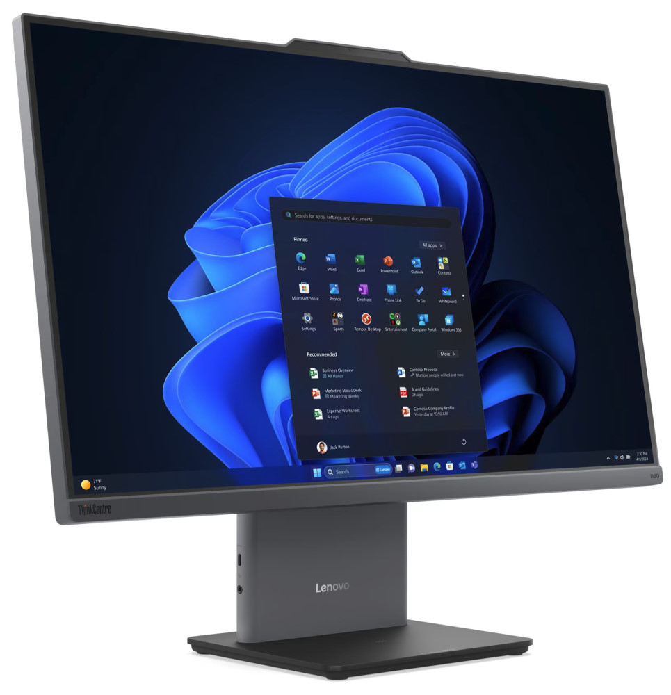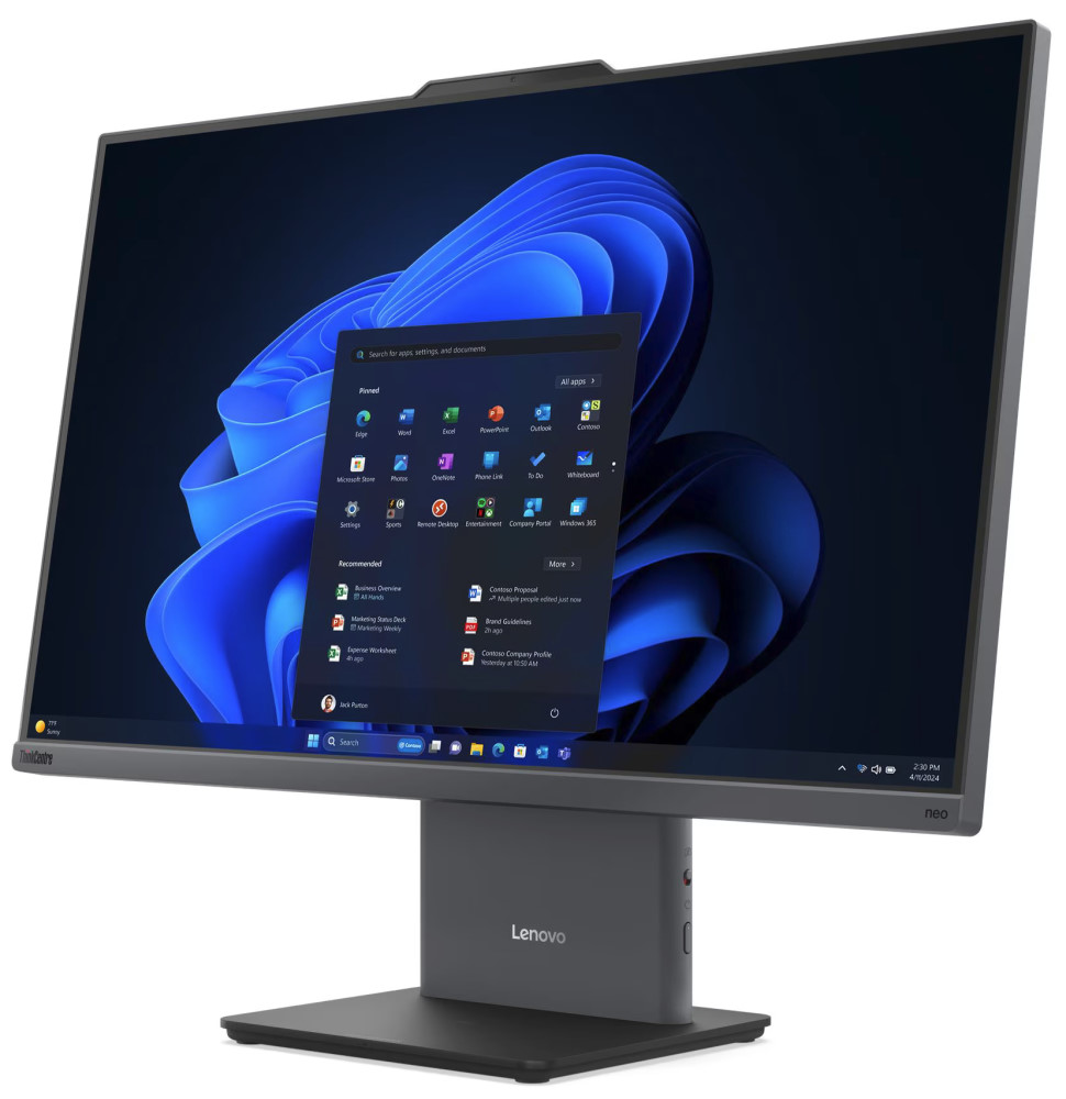 Das ThinkCentre neo 50a 27 Gen 6 LNL ist ein großer All in One, der den Arbeitsplatz sichtbar beruhigt.