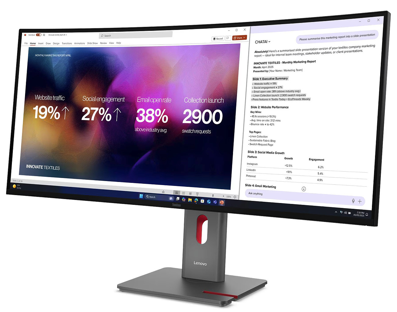 Beim P40WD-40 hat Lenovo auf Umweltfreundlichkeit geachtet. Er besteht aus recycelten Materialien und ist EPEAT Gold, TCO 10 und ENERGY STAR zertifiziert. Zudem sorgt die TÜV Rheinland Eye Comfort Zertifizierung für entspanntes Arbeiten auch bei langen Sitzungen.