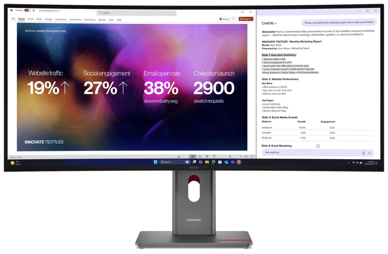 Lenovo integriert clevere Features für mehr Produktivität. Mit True Split teilst du den Monitor in flexible Bereiche. Das eKVM macht die Steuerung mehrerer Systeme einfach. Dazu kommen Picture-in-Picture und Picture-by-Picture, perfekt für Multitasking.