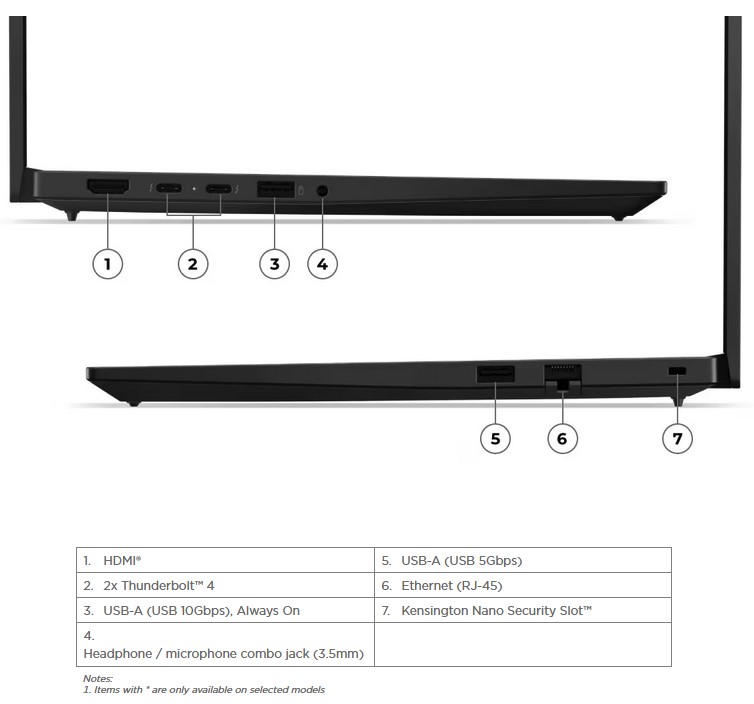 2x Thunderbolt 4, with USB PD 45-65W and DisplayPort 2.1
