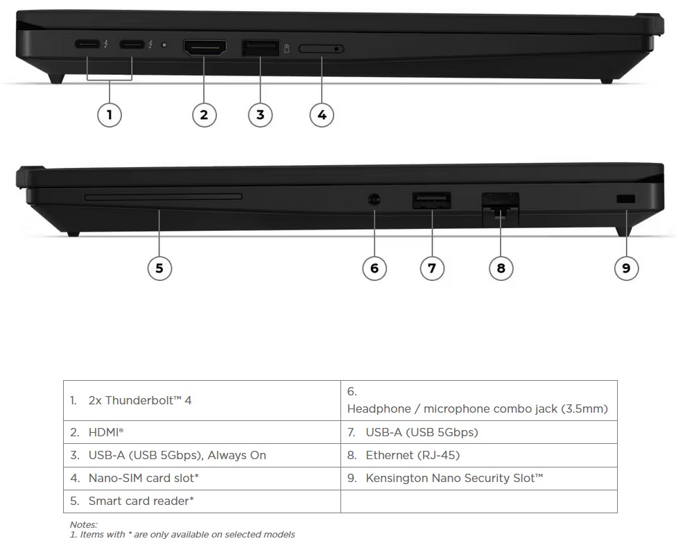 2x Thunderbolt 4, with USB PD 45-65W and DisplayPort 2.1