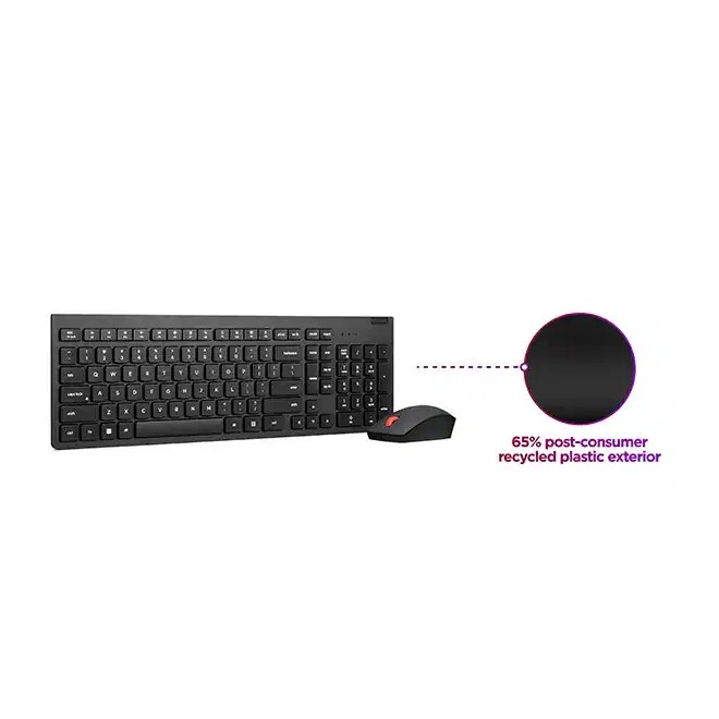 Die Lenovo Essential Funktastatur und -Maus Kombi Gen 2 wurde speziell für moderne professionelle Anwender entwickelt und bietet Funktionalität, Komfort und Stil. Genießen Sie ein erstklassiges, geräuschloses Tipperlebnis mit der flachen 2,5-Zonen-Tastatur und reaktionsschnellen Tasten. Die ergonomisch gestaltete Maus in Standardgröße ergänzt die Tastatur optimal in Design und Funktionalität. Der 2,4-GHz-Empfänger garantiert eine stabile Verbindung für maximale Zuverlässigkeit. Diese Kombination besteht zu 65 % aus recyceltem Kunststoff und ist somit ebenso nachhaltig wie produktiv. Inklusive dreijähriger eingeschränkter Hardware-Garantie und weltweitem Produktsupport.