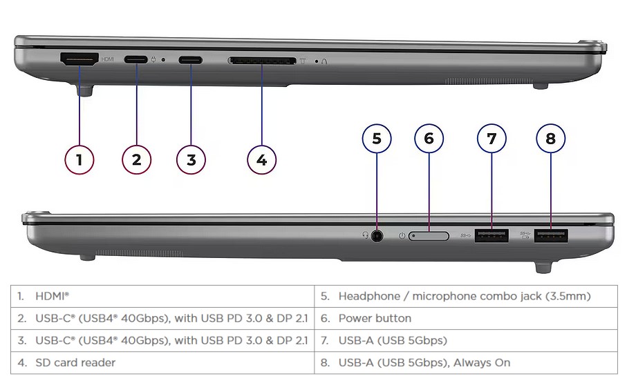 2x USB-C (USB4 40Gbps), USB PD 3.0 and DisplayPort 2.1