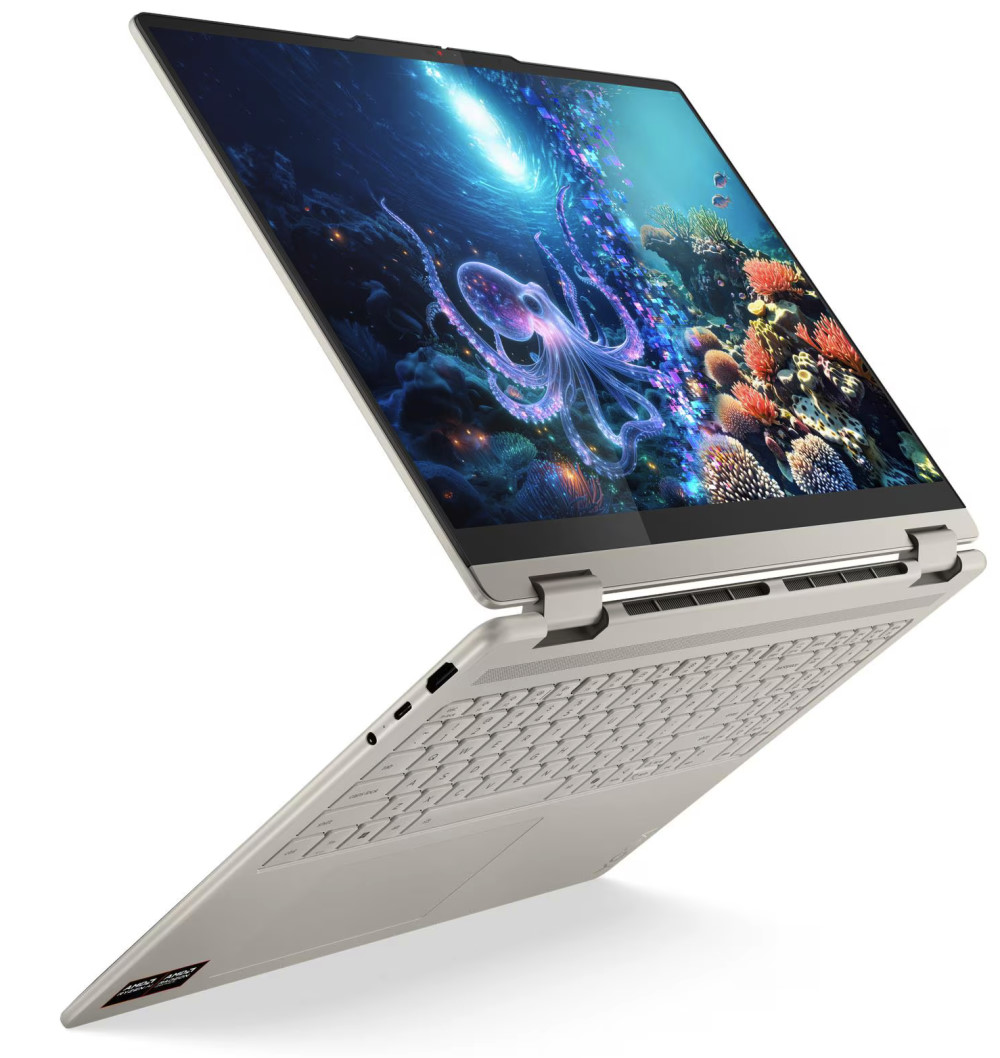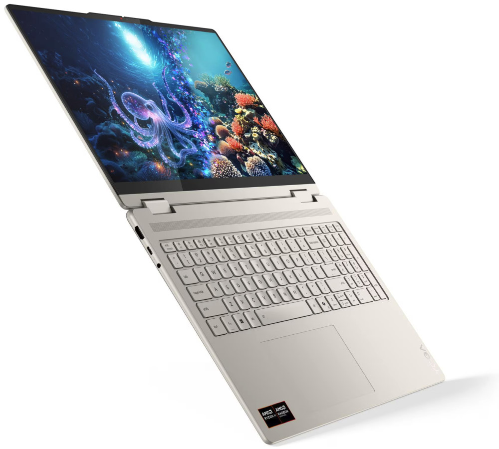 Dank 360-Grad-Scharnier wechselst du mühelos zwischen Laptop-, Tablet- und Zeltmodus. Dolby Atmos Sound, ein ausdauernder Akku und viele praktische Extras wie Fingerabdrucksensor, IR-Kamera, Wi-Fi 7 und recyceltes Aluminium machen das Yoga 7 zu einem rundum durchdachten Gerät.